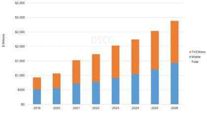 上個月DSCC表示,從2020年(10.7億美元)到2026年(29億美元),AMOLED堆疊材料收入將保持18%的增長率。如果UDC真的能夠推出商用藍色PHOLED,市場甚至可能超過30億美元。
