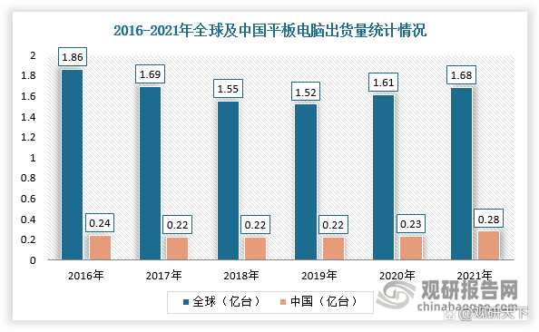 觸控顯示主要應用于消費電子、車載顯示、工控屏等領域。自2020年疫情集中爆發以來,遠程辦公、隔離居家娛樂的需求激增,平板電腦、筆電等PC市場一改頹勢,2021年全球PC出貨量達3.49億臺,同比增長14.79%,中國PC出貨量達到5300萬臺,同比增長7.94%;其中全球平板電腦出貨量達到1.68億部,中國達到0.28億臺。