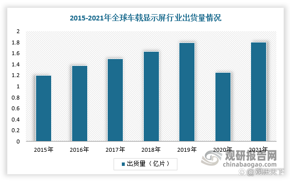 而在汽車領域,車載觸控顯示最早應用于儀表盤顯示系統,但近幾年在汽車電動化、電子化、智能化的浪潮下,車載觸控顯示屏迎來量價齊升,如車載中控屏由傳統的7-8寸升級到10寸以上,數量從傳統的單屏增加到現在主流的雙屏(中控屏+儀表屏)甚至多屏。根據數據顯示,2021年,全球車載顯示屏出貨量達1.8億片,同比增長41.73%,預計隨著全球汽車市場銷量增長,車載顯示屏出貨量將持續增長。