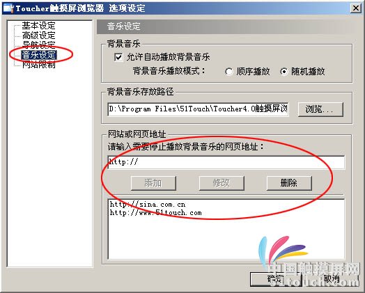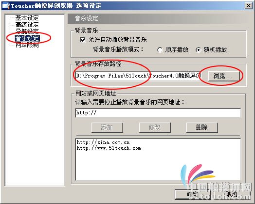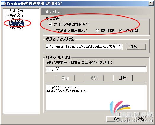 通過這個設置,可以指定或者修改Toucher觸摸屏瀏覽器背景音樂的存放路徑。
