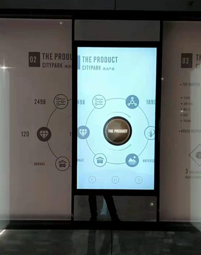 3、人工推拉滑軌屏互動系統:就像推動窗戶一樣,用手直接推拉屏幕外框的方式控制滑行軌道。